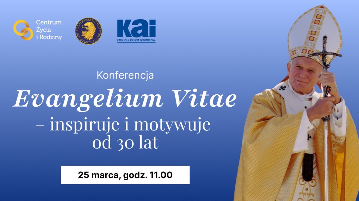W związku z 30. rocznicą ogłoszenia przez papieża Jana Pawła II encykliki „Evangelium Vitae” Katolicka Agencja Informacyjna, Centrum Życia i Rodziny oraz Fundacja Instytut na rzecz Kultury Prawnej Ordo Iuris zapraszają na konferencję zatytułowaną „Evangelium Vitae – inspiruje i motywuje od 30 lat”. Wydarzenie odbędzie się 25 marca (wtorek) o godz. 11.00 w budynku Sekretariatu Konferencji Episkopatu Polski w Warszawie.